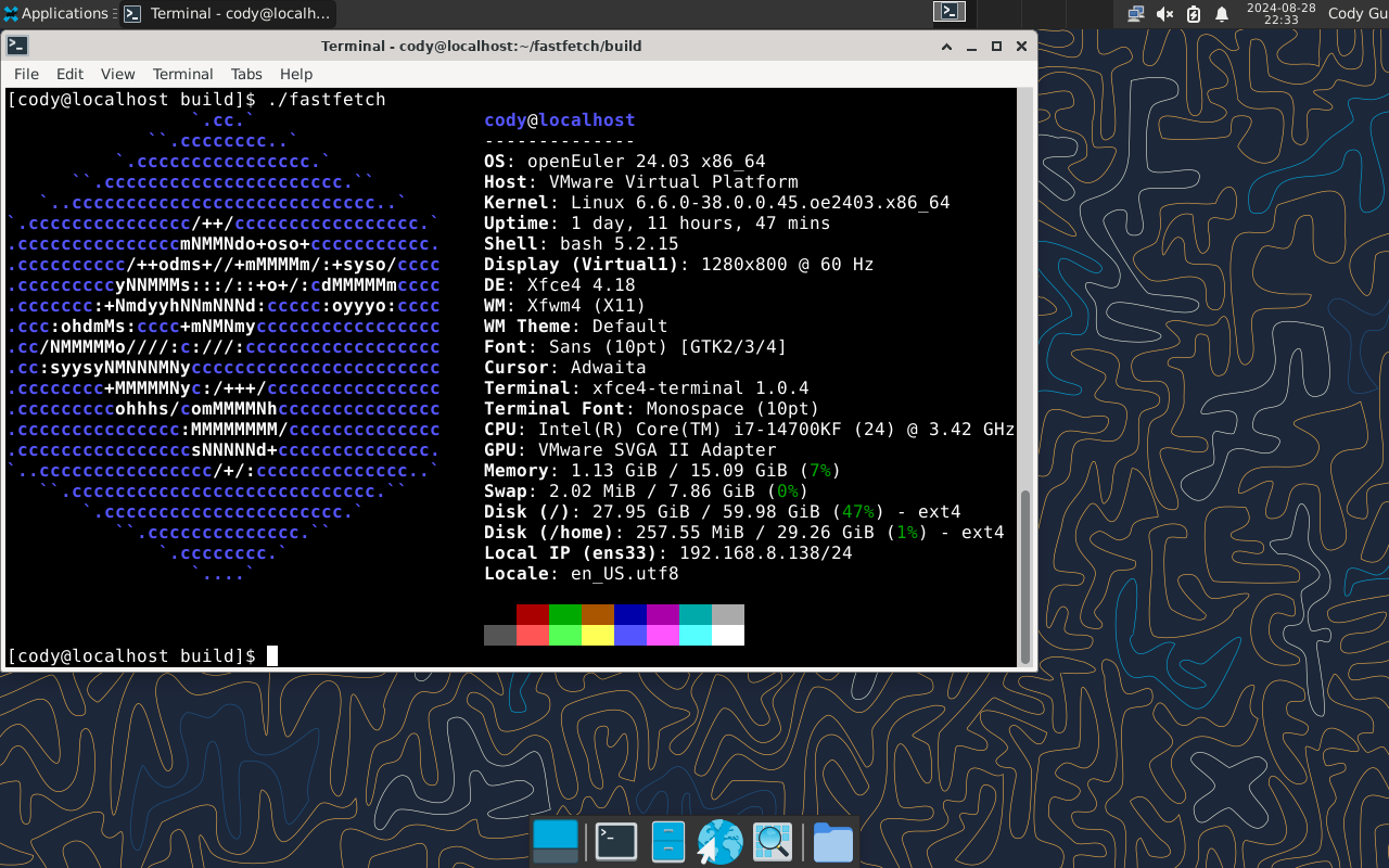 按照这个教程安装xfce桌面环境,fastfetch 编译步骤