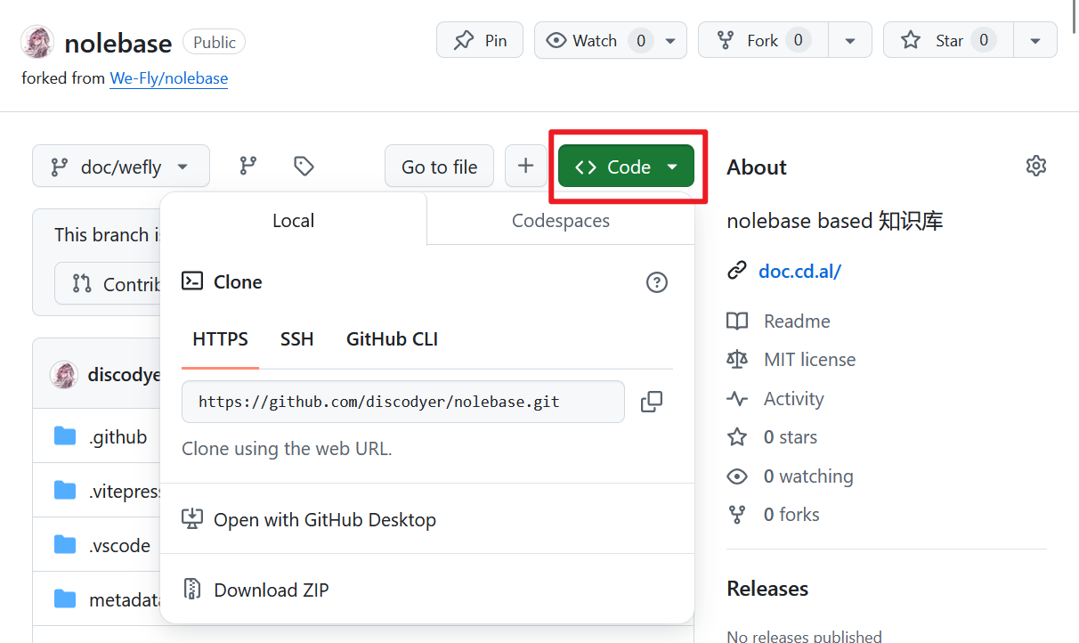 git clone [email protected]:YOUR_NAME/nolebase.git # 使用ssh克隆然后通过code打开